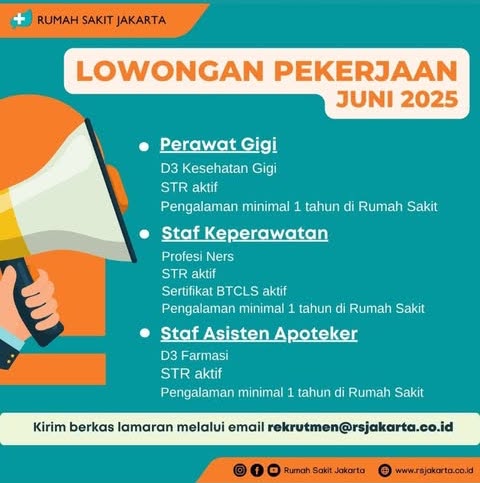 Di Rumah Sakit Jakarta, kami percaya bahwa pelayanan kesehatan terbaik hanya bisa diberikan melalui dedikasi, profesionalisme, dan semangat kerja tim. Karena itu, kami selalu membuka peluang bagi tenaga medis maupun non-medis yang ingin berkontribusi dalam meningkatkan kualitas layanan kesehatan masyarakat.
